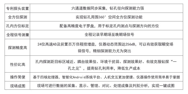基于瞬變電磁法的孔中多通道瞬變電磁儀,采用“孔內(nèi)激發(fā)-孔內(nèi)接收”的方式來獲取鉆孔周邊介質(zhì)的電性展布特征,以查明鉆孔周邊異常情況,實(shí)現(xiàn)“一孔多見”,并集鉆孔測斜、測深于一體。可應(yīng)用于地鐵、隧道、水利、礦山等領(lǐng)域的隱患探查,也可用于資源勘查領(lǐng)域。