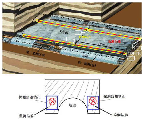 探測監(jiān)測系統(tǒng)布置平面示意圖及斷面圖