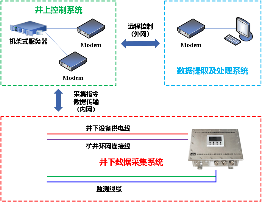 微震與電法遠(yuǎn)程監(jiān)測系統(tǒng)可實(shí)現(xiàn)微震和電法數(shù)據(jù)實(shí)時(shí)采集。對監(jiān)測區(qū)域內(nèi)的巖體破裂及水的滲流情況進(jìn)行綜合實(shí)時(shí)監(jiān)測預(yù)警。