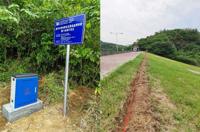 監(jiān)測(cè)系統(tǒng)實(shí)物圖(左側(cè)為集成機(jī)箱)右側(cè)為線纜埋設(shè)