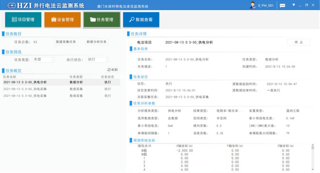 并行電法云監(jiān)測(cè)系統(tǒng)是基于國家發(fā)明專利(ZL200410014020、ZL201510120120.X)而研制的最新數(shù)字化產(chǎn)品,該系統(tǒng)采用高效率、大數(shù)據(jù)、泛裝置的地電場(chǎng)同步采集技術(shù),并結(jié)合物聯(lián)網(wǎng)技術(shù)、5G傳輸、云端處理、深度學(xué)習(xí)等手段,推動(dòng)了直流電法由傳統(tǒng)單次探測(cè)功能向“遠(yuǎn)程采集、云端存儲(chǔ)、時(shí)變處理、動(dòng)態(tài)預(yù)警”方向轉(zhuǎn)變的新發(fā)展,實(shí)現(xiàn)了“采集在現(xiàn)場(chǎng),傳輸在5G,存儲(chǔ)在云端,控制在手上,顯示在工地,深度處理在管理中心”的功能,為數(shù)字工程建設(shè)提供了重要的技術(shù)支撐。