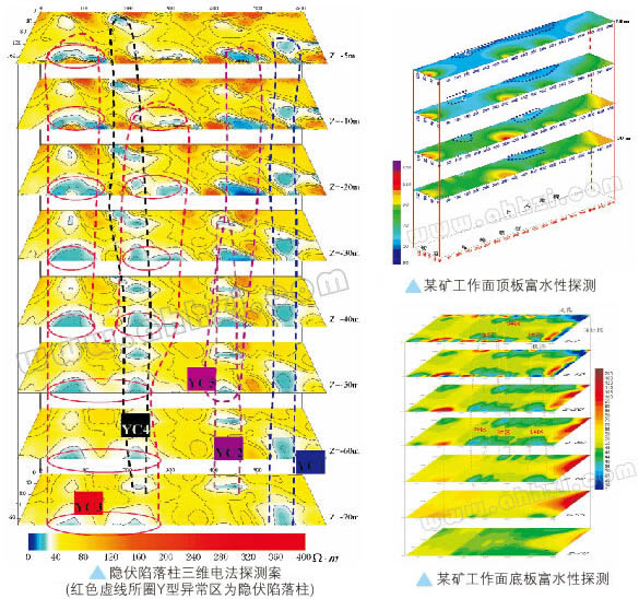煤礦采區(qū)、工作面含水構(gòu)造探測(cè);礦井突水導(dǎo)水通道探測(cè);工作面煤層頂?shù)装甯簟⒑畬犹綔y(cè);煤層頂板、底板富水性、潛在突水點(diǎn)探測(cè);采空區(qū)積水探測(cè);含水陷落柱探測(cè);煤層頂?shù)装寮庸套{檢測(cè)。